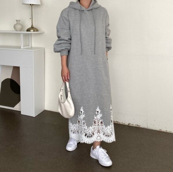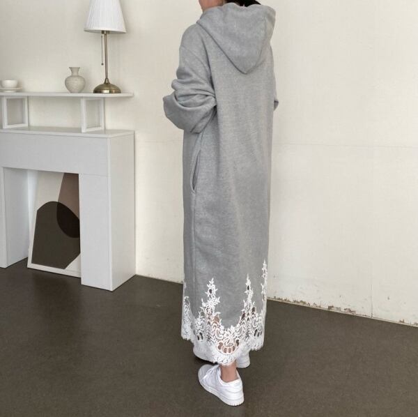 ニットのロングワンピース。 裾がレースになっているので、 ちょっとしたお出かけにもオススメです。 カラー:グレー サイズ:レディースM