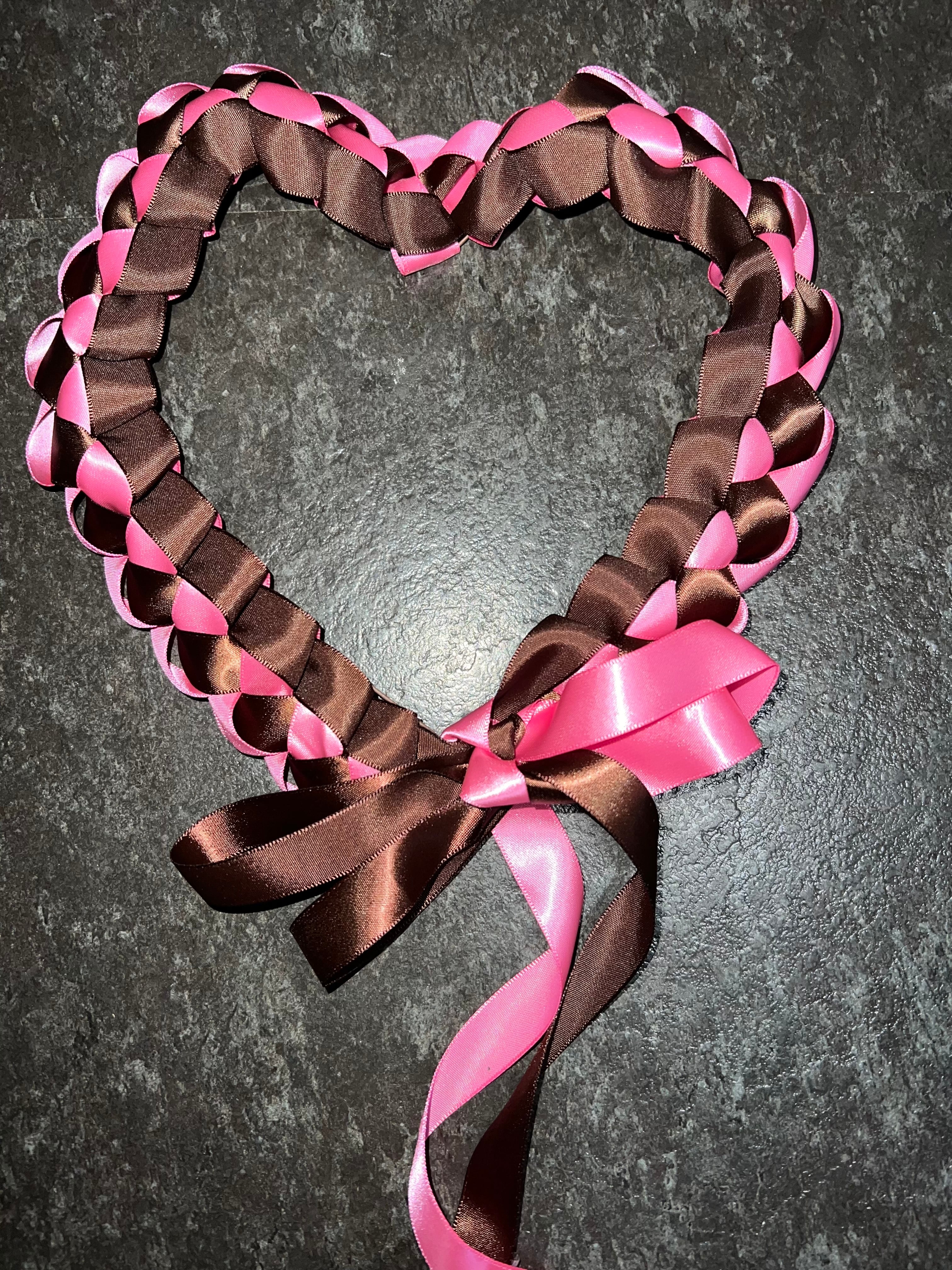 ピンクとチョコレートカラーのリボンで作った、